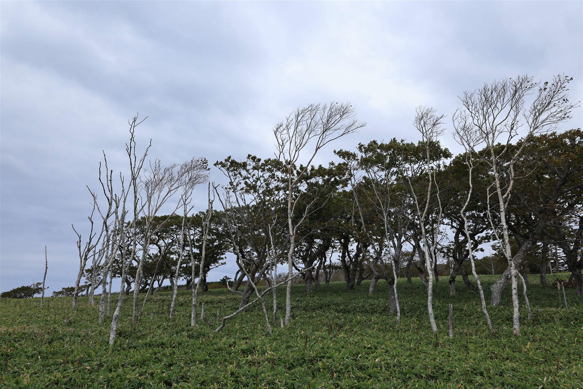 「尻羽岬」は厚岸湾を構成する岬です。「シリ」ではなく「シレ」なところが微妙に難読です。駐車場から徒歩 30 分くらいで行けるようですが、風が強いのと天気も悪くいつ大雨にやられるかわからないので、今回は断念しました。駐車場やここに向かう道でも北海道らしいクマザサの丘陵地を堪能できます。