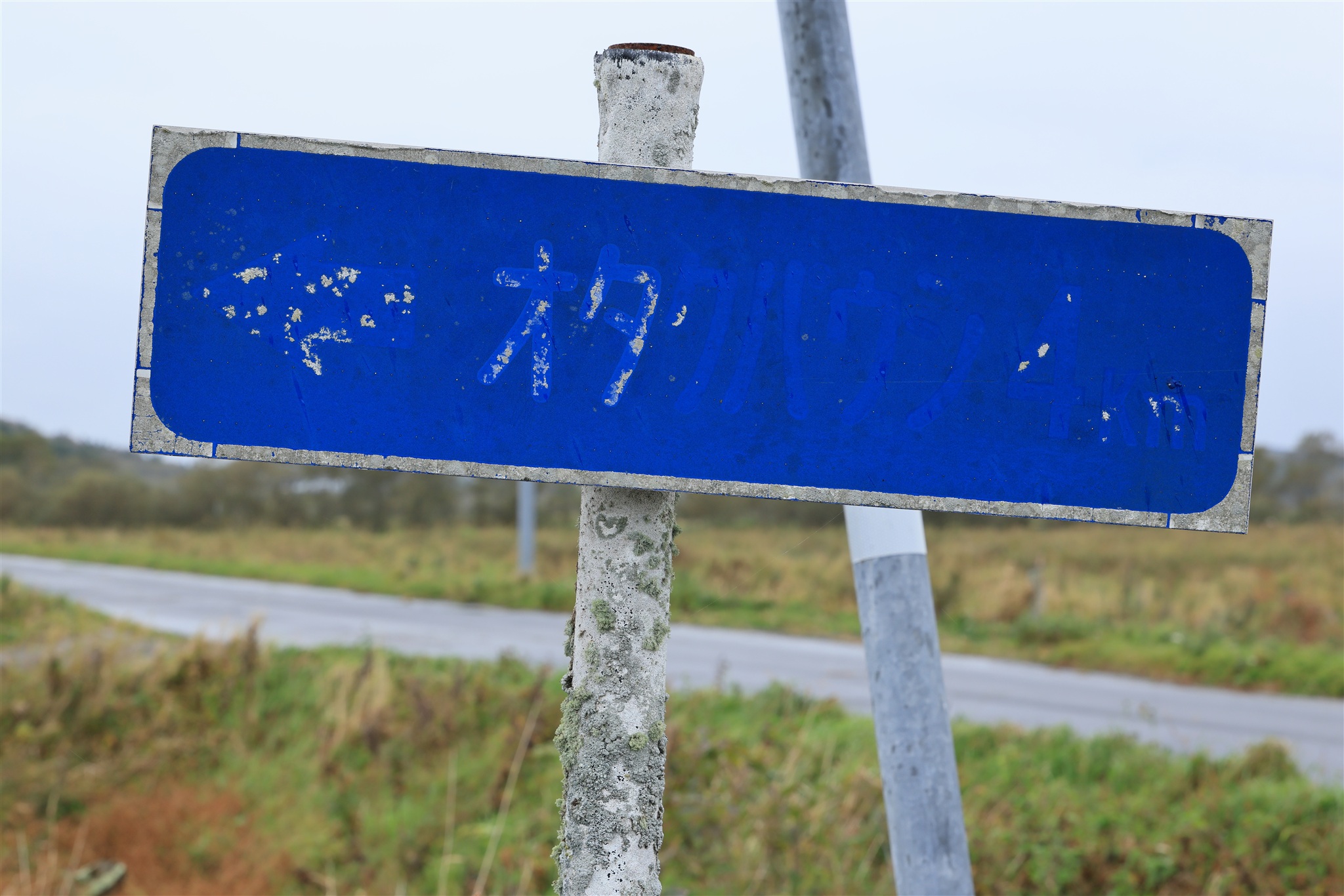 「オタクパウシ」。ちゃんと緑の看板が立っています。看板が立っているのはオタクパウシの集落のかなり手前です。オタクパウシの中心には牧場しかないようなので、ここで折り返しました。